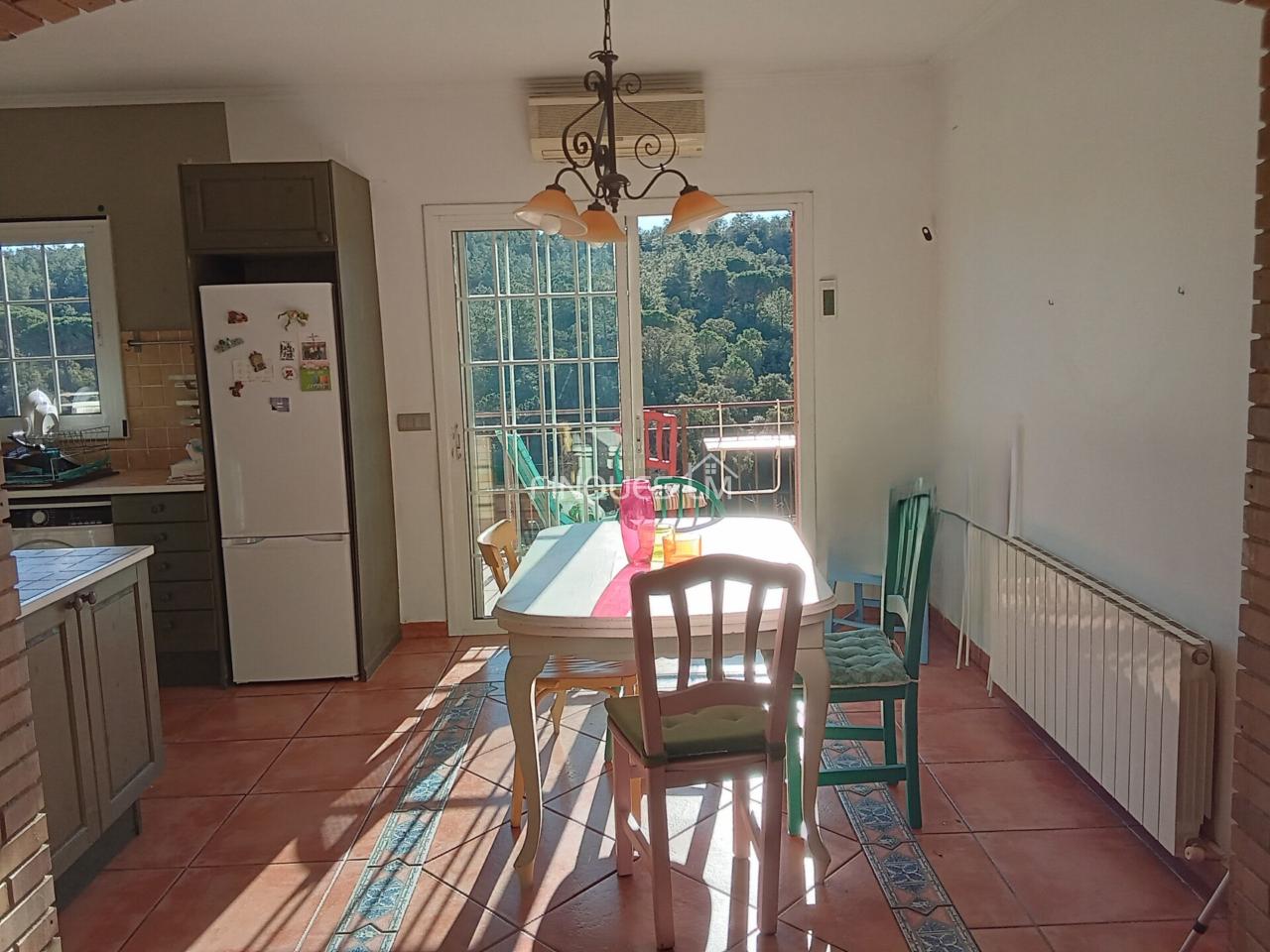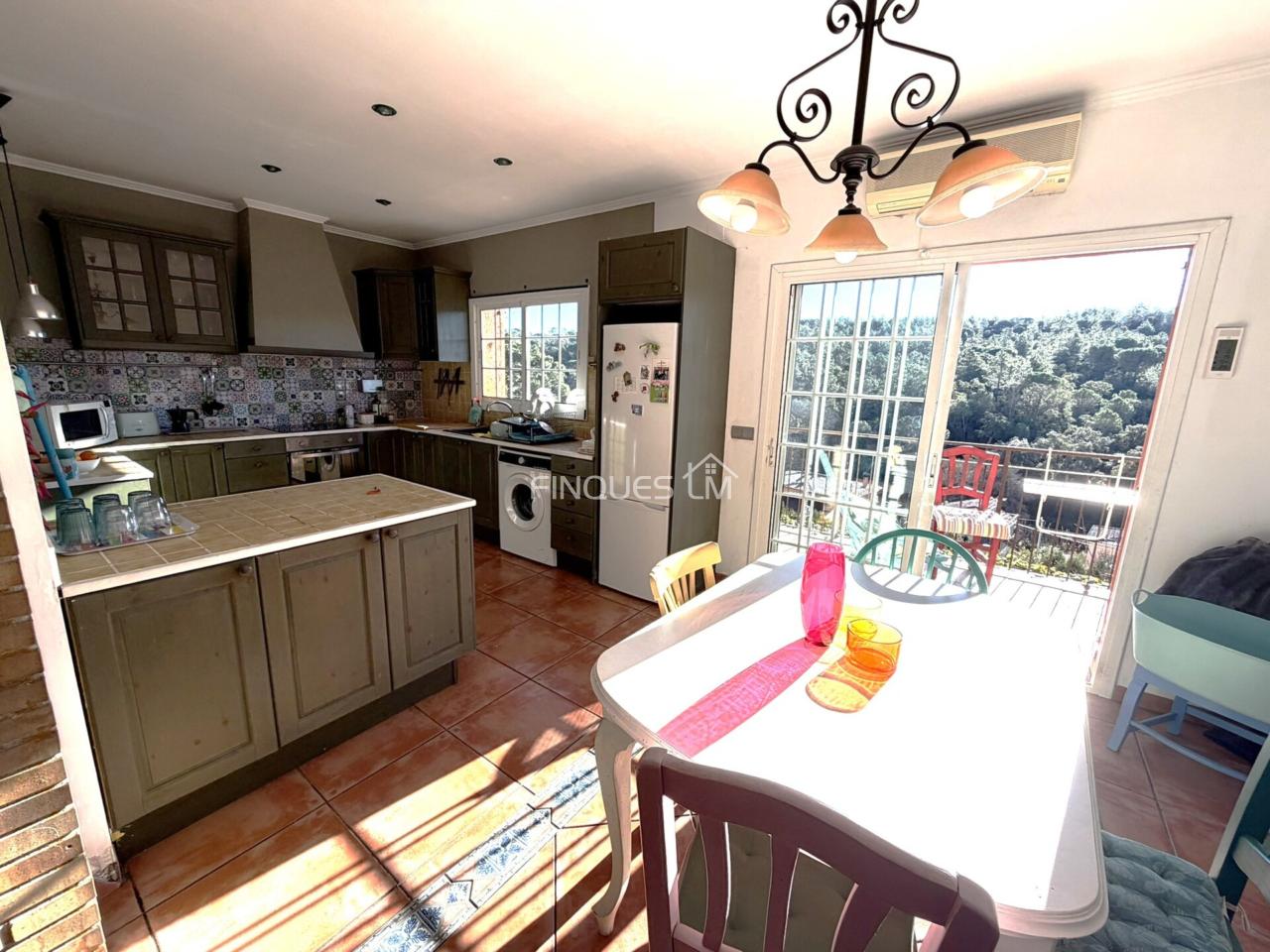 Preciosa cocina independiente pero con barra americana y zona de comedor, desde la cocina sales a una bonita terraza con vistas y acceso al jardín.