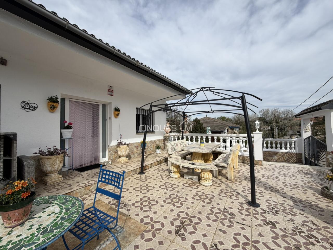 En la parte exterior de la vivienda tiene un fácil acceso para poder dejar los coches dentro del terreno o bien al garaje. Dispone de una preciosa barbacoa.